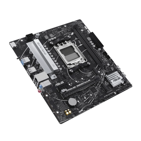 AMD Socket AM5 for AMD Ryzen 9000 & 8000 & 7000 Series, AMD B650, 2 x DIMM slots, Max. 96GB, DDR5 7200+, 2 x M.2 slots and 4 x SATA 6Gb/s ports, 1 x PCIe 4.0 x16 slot (supports x16 mode), 1 x PCIe 4.0 x16 slot (supports x8/x4 mode), 1 x PCIe 4.0 x1 slots, 1 x Realtek 2.5Gb Ethernet, Realtek 7.1 Surround Sound High Definition Audio, 2 x USB 5Gbps ports (2 x Type-A), 4 x USB 2.0 ports (4 x Type-A), 1 x HDMI port, 1 x Realtek 2.5Gb Ethernet port, 3 x Audio jacks, 1 x BIOS FlashBack button, micro-ATX Form Factor