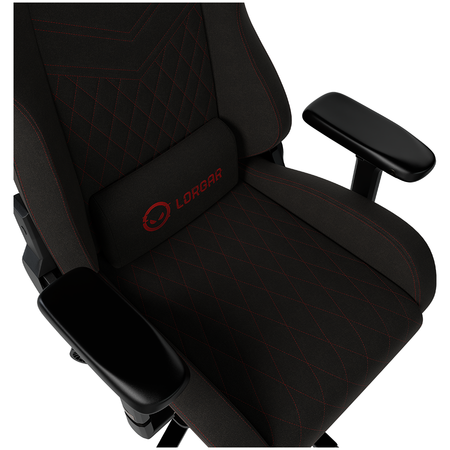 LORGAR Ace 422, Gaming chair, Anti-stain durable fabric, 1.8 mm metal frame, multiblock mechanism, 4D armrests, 5 Star aluminium base, Class-4 gas lift, 75mm PU casters, Black + red
