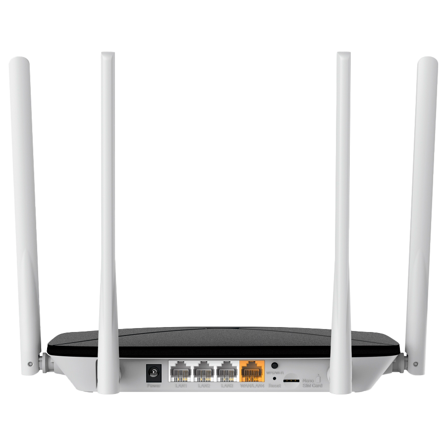 Mercusys MB135-4G AC1200 Wi-Fi 4G LTE Router, Build-In 150Mbps 4G LTE Modem, 300 Mbps at 2.4 GHz, 867 Mbps at 5 GHz, 4G Cat4 150/50 Mbps, Internal Antennas, Extra 3G/4G Antenna Ports, 1x 10/100 Mbps LAN Port, 1x 10/100 Mbps WAN/LAN Port